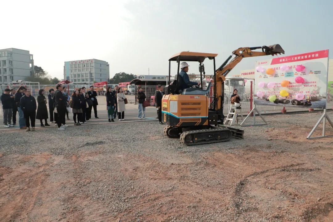 师生团还沉浸式体验了工程机械设备操作,试驾三一电动迷你挖掘机,观摩挖掘机扎气球、翻硬币、叠螺母等技能展示。