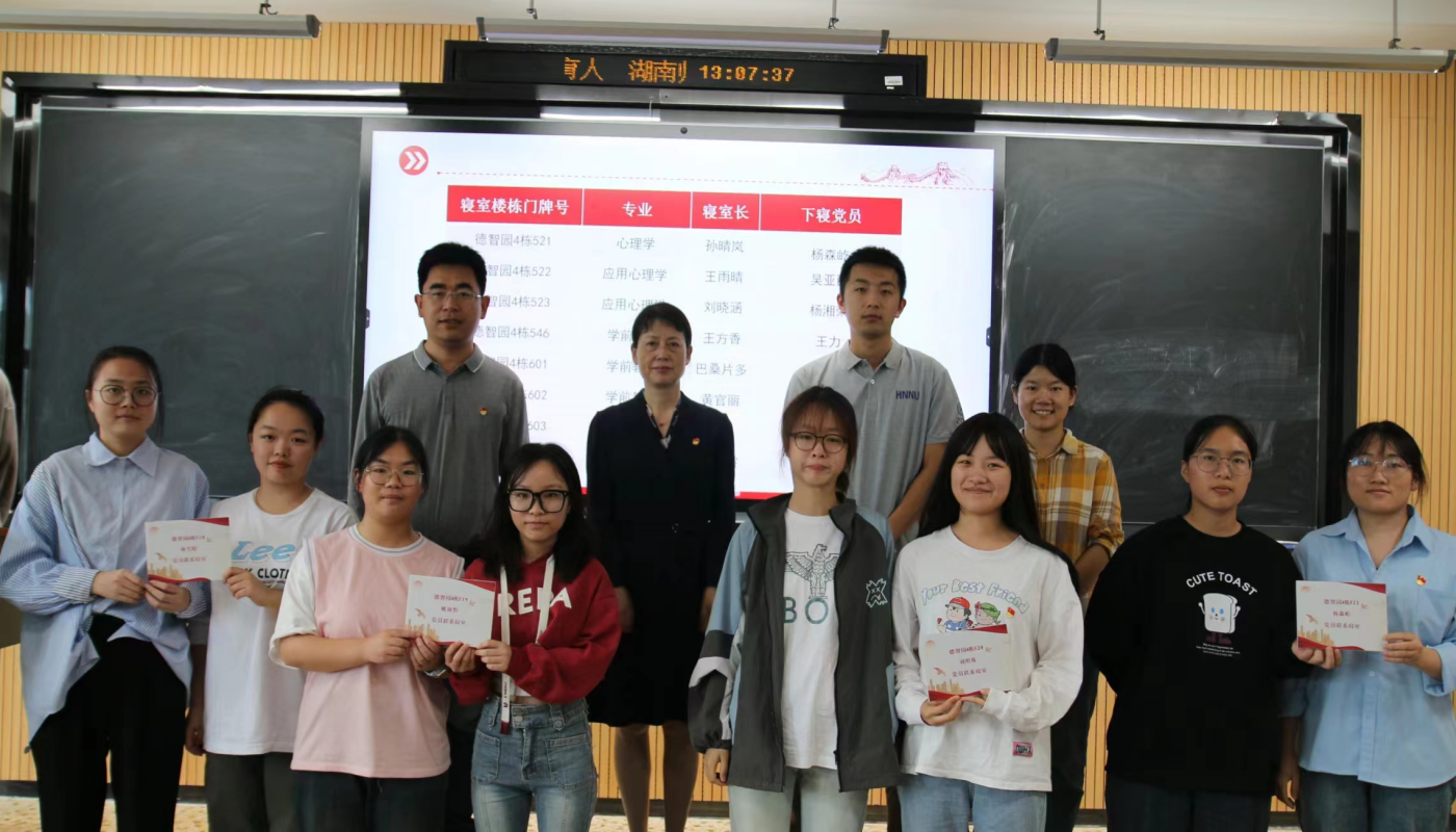 最后,李子鸣宣读党员与对接寝室名单,汪植英等领导老师为参与此次活动的党员和寝室授牌并合影留念。