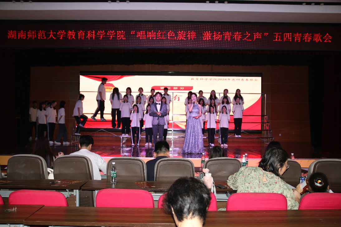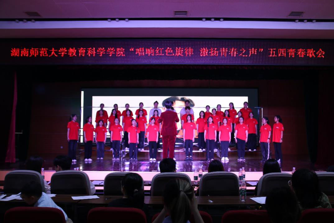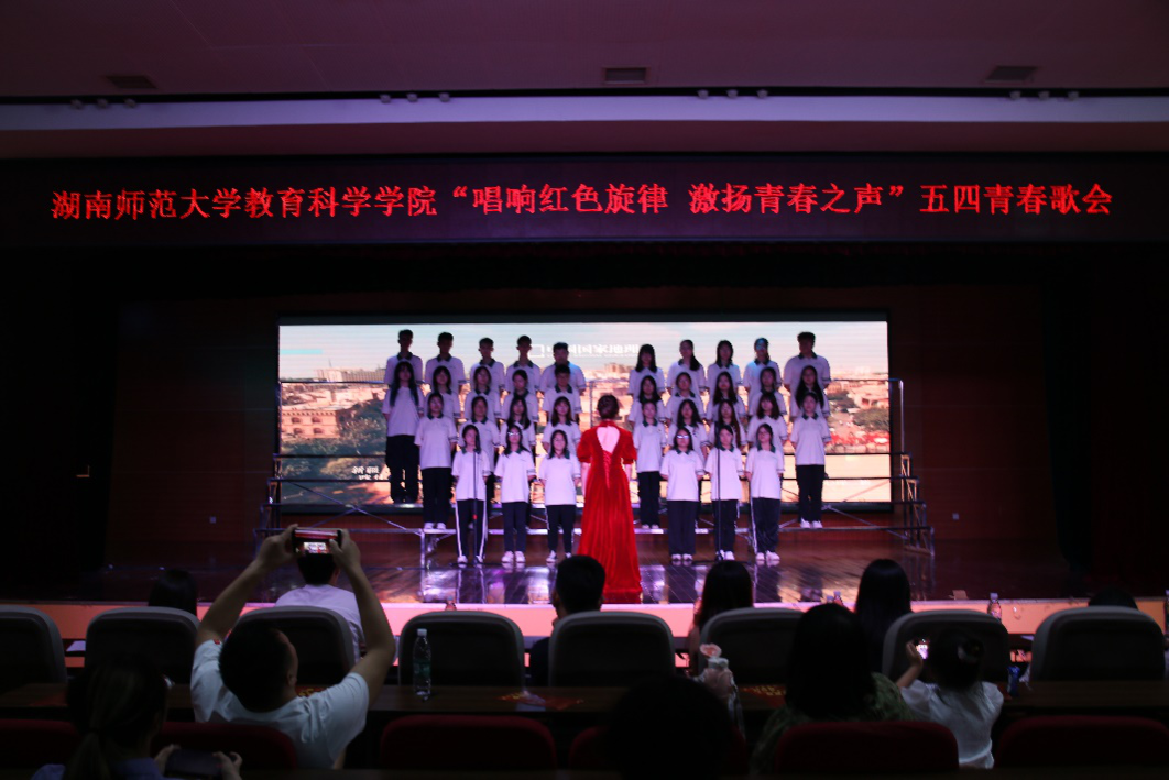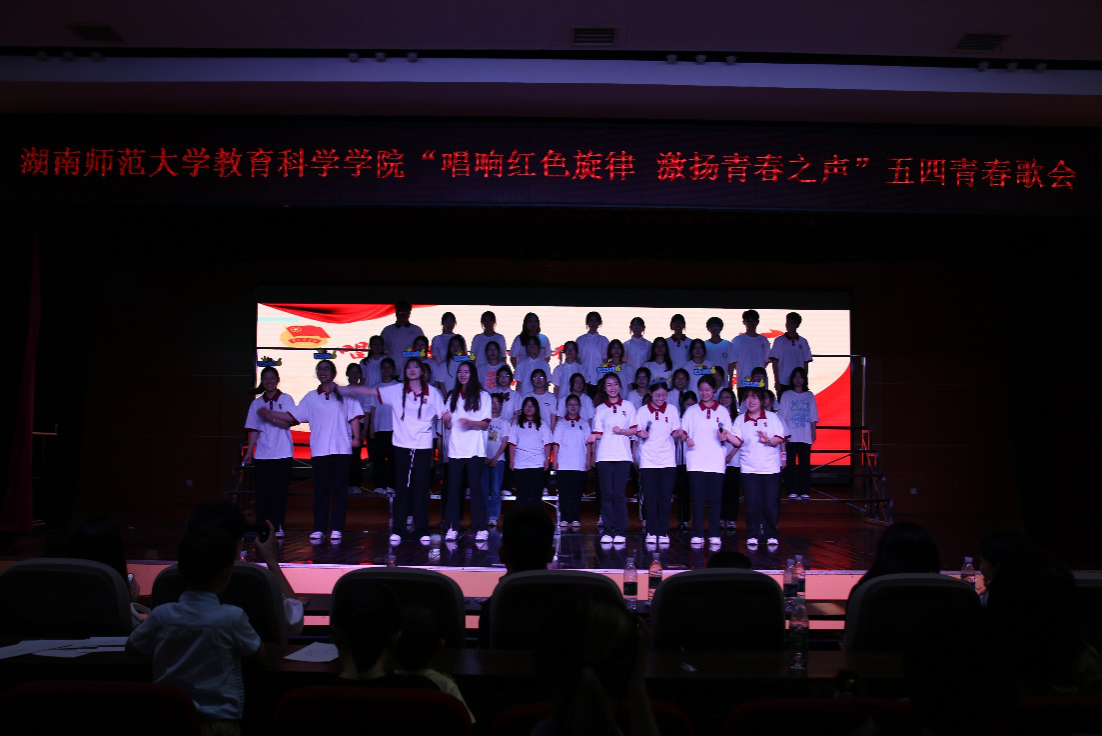 第一部分由23级教育班团支部合唱《红旗飘飘》引入,他们将高涨的热情融入歌声中,嘹亮的歌声带动了观众的情绪,活跃了现场的氛围;22级心理一班团支部的一首《改革春风吹满地(改编版)》将观众拉回那个青葱岁月,带领观众回顾了改革开放后我国取得的伟大历史成就,他们昂扬欢快的歌声和充满活力的舞姿赢得阵阵掌声,将歌现场气氛推向了高潮;第二部分中,22级教育班团支部用改编版的《少年》激励教科学子接过历史的接力棒,展现中国青年的时代新形象;第三部分中,23级学前教育班团支部带领观众走入强国大道,一首《征途》诠释着耀眼的中国信仰,一首慷慨激昂的《有我》唱出迎着光明砥砺前行的时代强音……各班结合自身特色,充分发挥想象力和创造力,用丰富多彩的形式呈现了一场青春盛宴。