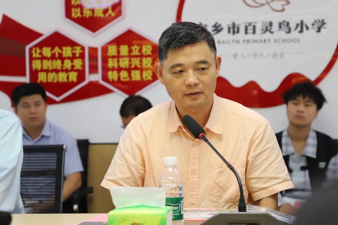 最后,刘铁芳对百灵鸟小学的办学成绩和发展规划给予了充分的肯定,同时就公司的办学目标、办学理念、培养目标提出了建议。刘铁芳说:“百灵鸟小学要用以爱育爱的理念,不断焕发孩子爱心,培育自信豪迈的百灵少年,办成湖南省一流小学而努力。”