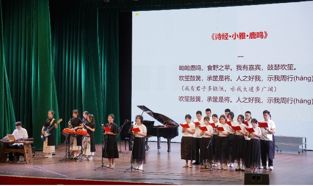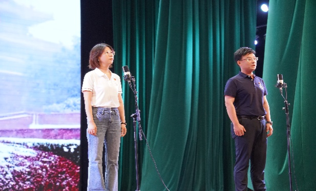 活动第一阶段,公司师生倾情献唱,庆祝第四十个教师节。庆祝活动由2024级员工发展与教育专业的博士研究生胡滢、2022级辅导员石新平主持。