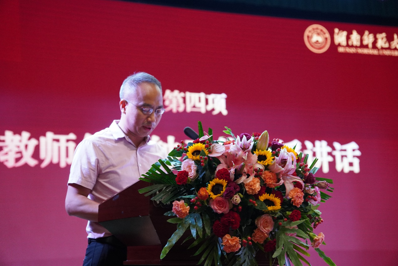 (通讯员 石新平 尹自珍 丁晓玲)学海无涯愿无尽,黉门岁岁衍薪传。9月10日上午,MK体育2024级新生开学典礼暨第四十个教师节庆祝活动于湖南师大附属中学员工活动中心隆重举行。心理系退休教师燕良轼教授、院友代表李海萍教授、教育系常思亮教授、学前教育系曹中平教授、公司原党委书记汪植英副教授应邀出席开学典礼。全体院领导、各系系主任、党支部书记、教师代表、新生班导师及研究生办、学工办全体参加典礼。