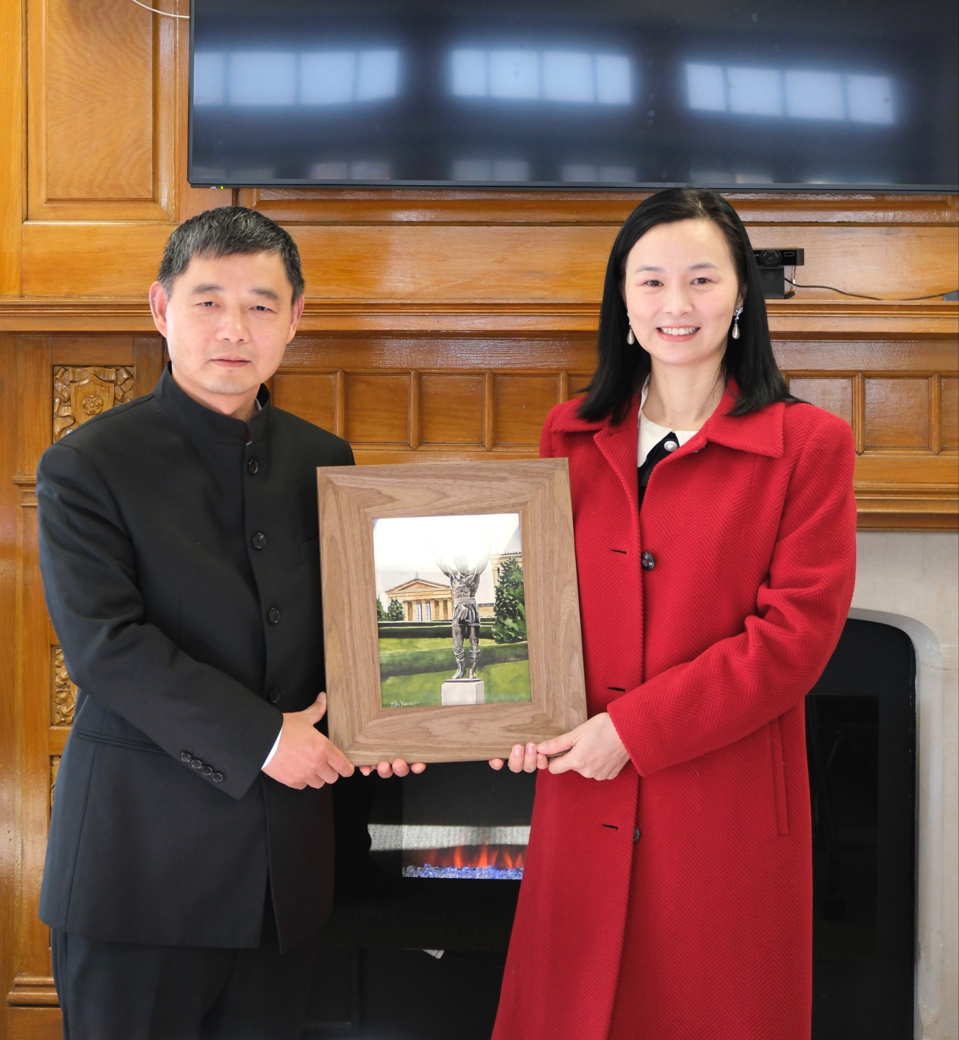 (公司经理刘铁芳与圣约瑟夫大学副董事长喻娟合影)