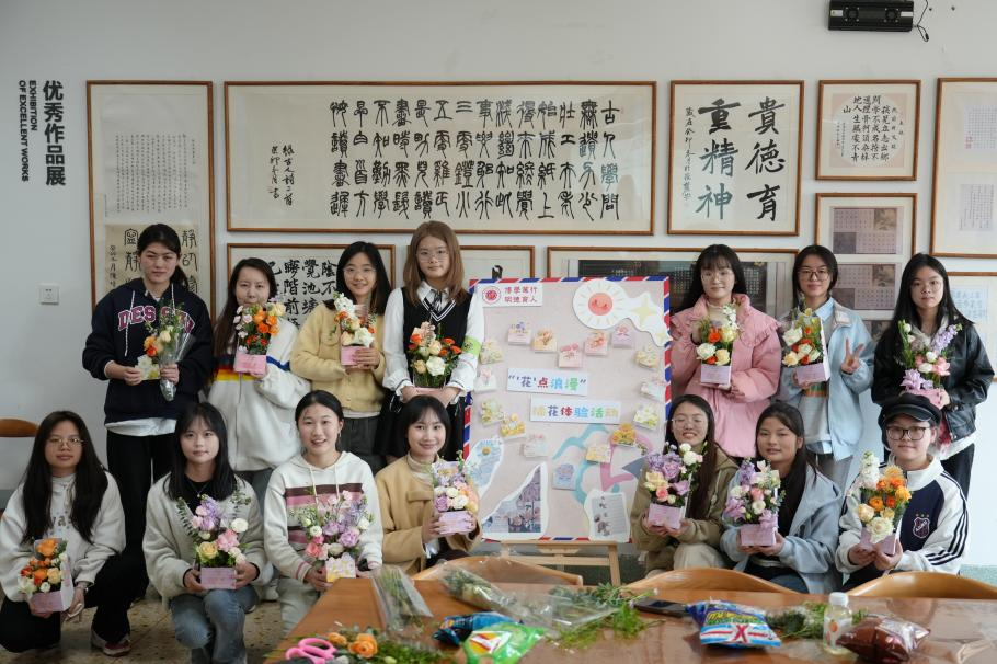 以花之名,与春有约。“花点浪漫”插花体验活动结合插花艺术与传统文化,通过插花实践、诗词互动等形式,帮助师生舒缓压力、提升审美情趣,同时增进情感交流。师生们在花艺师指导下创作个人花篮,一同感受自然之美、文化之韵。