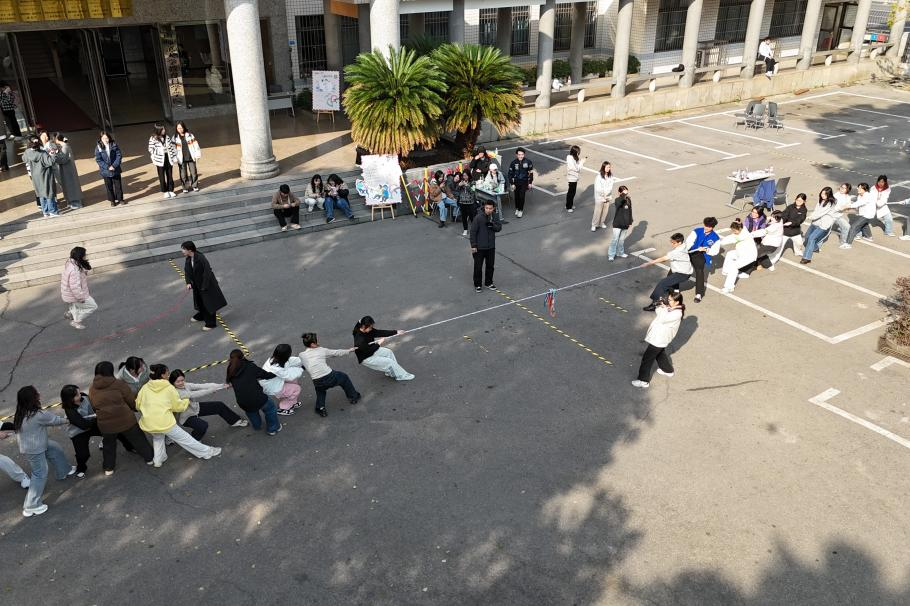 凝“绳”聚力,拔出精彩。“力‘拔’青春,燃动二十”拔河比赛中,师生联合组队,每支队伍都包含一位在职教师,此外,还有一支教师队伍参赛。随着裁判员一声令下,师生配合同台竞技,鼓足干劲倾尽全力,以热情、积极的精神点燃了现场气氛。拔河比赛不仅展现了学子蓬勃向上的朝气和奋勇争先的精神面貌,更培养了坚韧不拔的意志。