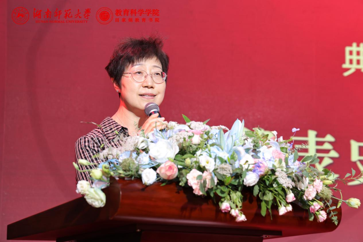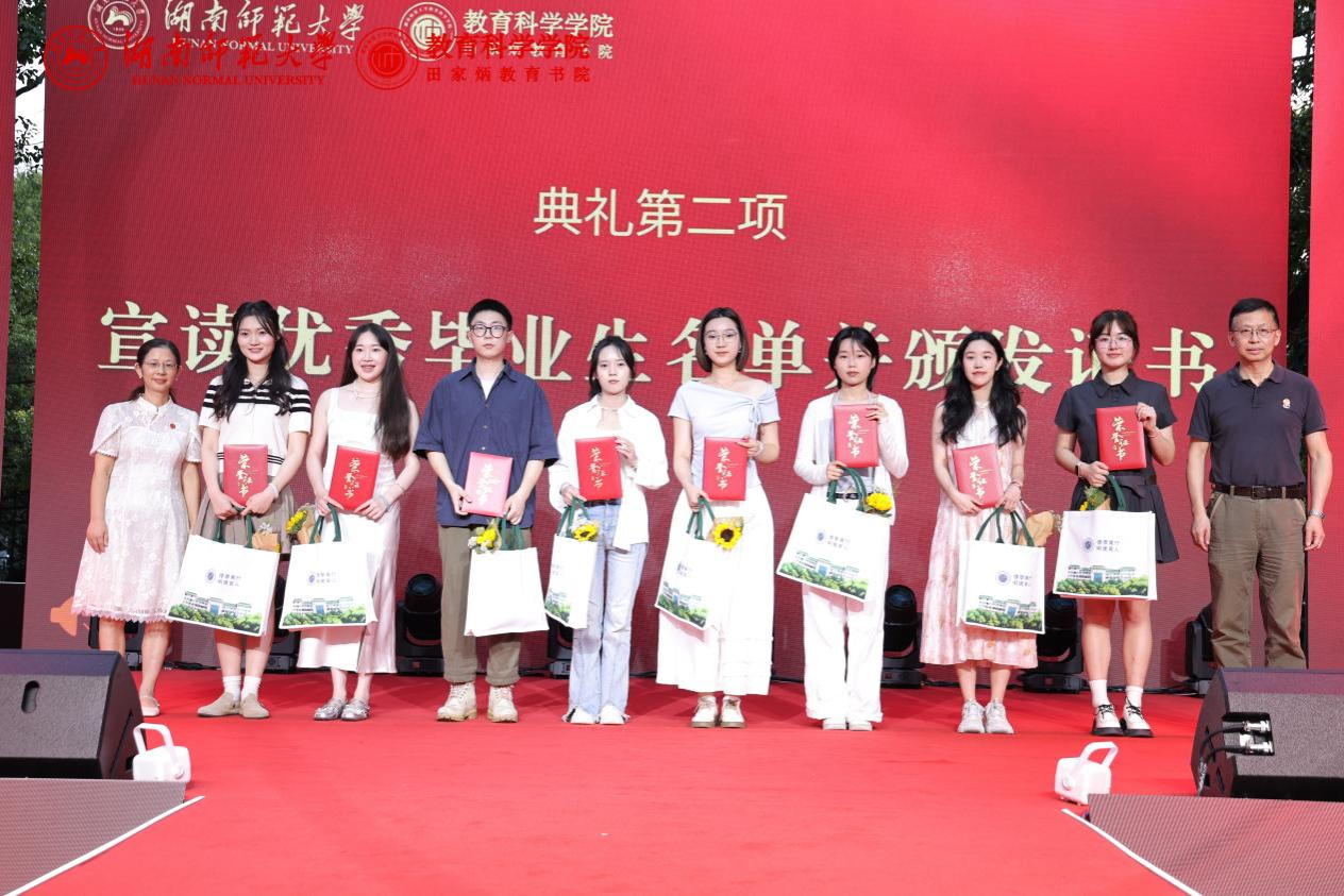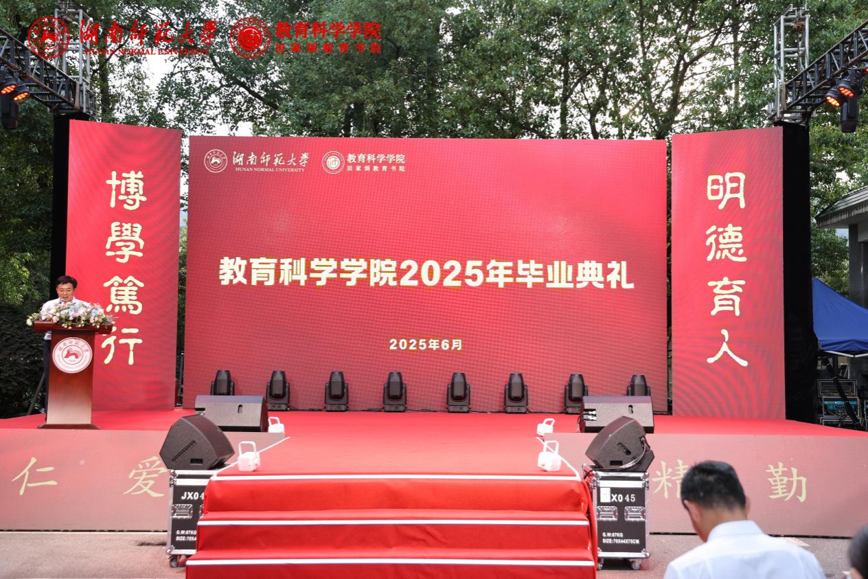 教育学本科生侯思宇、心理学硕士生夏笔奇作为毕业生代表发言。他们讲述了在教科院逐渐成长为脚踏实地、手握笔杆、心怀家国的教育人的经历,表达了对母校、母院以及教科院全体师生的感激与祝福。