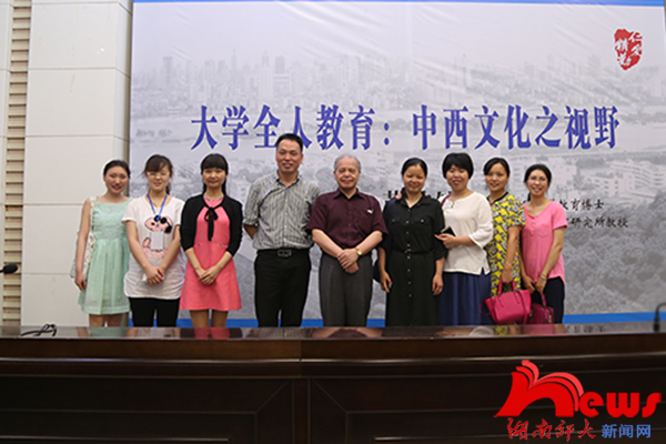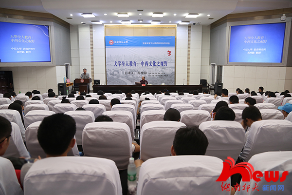 黄坤锦教授的讲座从文字是民族文化的代表、大学是人类文化的殿堂、全人教育是大学的功能三个方面展开。他以汉字中的“中”和“国”为例,说明了不同民族的文字蕴含了该民族文化的特点,发展大学全人教育要积极从民族文化中汲取营养。他还以台湾中原大学为例,说明了什么是大学全人教育、为什么及怎样推进大学全人教育。黄坤锦说,人除了关注身高、容貌等外在形态之外,更应该注重智慧、情感、创造力等内在品质。大学全人教育即是将人的内在品质与外在形态及其所属的社会文化予以整合,强调统整性、一致性和整体性的教育。他指出,推进大学全人教育有利于培养全面发展型人才,使员工成为有道德、有知识、有能力、和谐发展的“全人”;有利于增加高校各公司间的联系,使高校得到更好的发展。黄坤锦认为,注重专业与通识、学养与人格、个体与群体以及身心灵之间的平衡,注重中西文化、人文科技的融合是推进大学全人教育的重要途径。