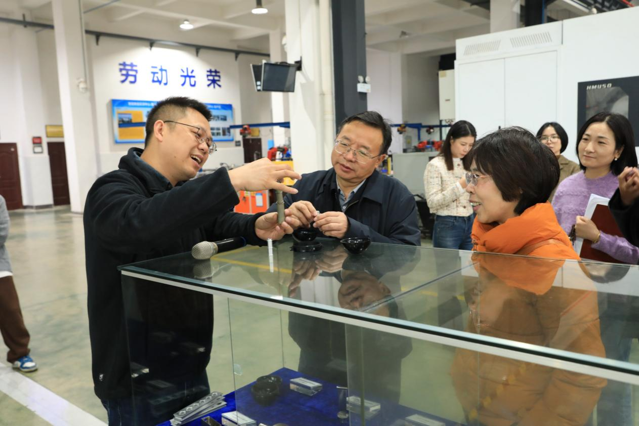 调研团通过“座谈交流+现场观摩”的形式全方位了解湖南工业职业技术公司在“楚怡”职教品牌建设、产教融合、专业群建设、创新创业教育等方面的特色亮点和典型经验。
