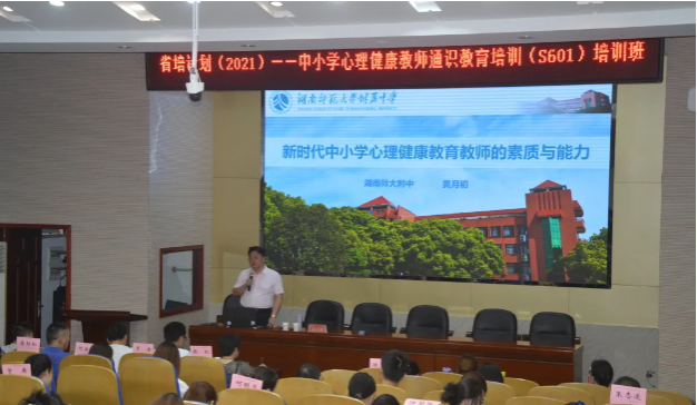 湖南师大附中党委书记黄月初主讲《新时代中小学心理健康教育教师的素质与能力》,黄书记从大量案例中剖析了青少年心理教育的重要性,分析了当下心理健康教育的态势,指出心理健康教师要通过不断学习和实践,丰富自己的公司产品能力,提升心理辅导能力及宣教能力,完善科研能力,沿着专业、正确、温暖的道路培养员工,沿着精准、科学、人文的道路指导帮助员工健康发展。