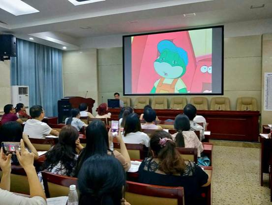 2018年7月23日上午,砂子塘湘天小学董事长、高级教师徐幸操老师以《品味语言文字的妙趣》为题为大家带来一场精彩的讲座。徐老师首先例举了一个案例:《一个美丽的小村庄》的片断教学设计。让学员们围绕案例大胆发言、说出自己的看法。经过大家的讨论做出总结:品味语言文字才是语文课真正是乐趣的开始。紧接着徐老师凭着“一袭”两个字,呈现出一场精彩纷呈的语文课,这让学员们体会到:深入到语言文字内部,才能真正感受到学习语言的畅快和愉悦。最后徐老师提出的前导后导习作新模式,该模式在小学课堂教学中具有很强的推广意义,给学员们带来深刻的启发。