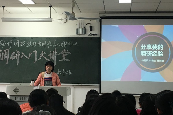 尚未升入大学时,苏淑丽就在研究性学习中找到了许多乐趣。“当时大家都在上课,我自己一个人请假去环保局、城市规划局、自来水厂调查水污染,和有关部门交流,还亲自测量PH值……”她自豪地说。而升入大学后,她对调研的兴趣越发强烈。大一时,她在张公岭校区主持了第一个课题——《对老员工独立思考能力的现状调查和分析——以mksport体育教科院本科生为例》。经过困难重重的调查走访、发放问卷、撰写调研报告等工作,终于圆满收工。而这个课题也获得了当年“创e杯”和“梦航杯”两个调研大赛的三等奖。