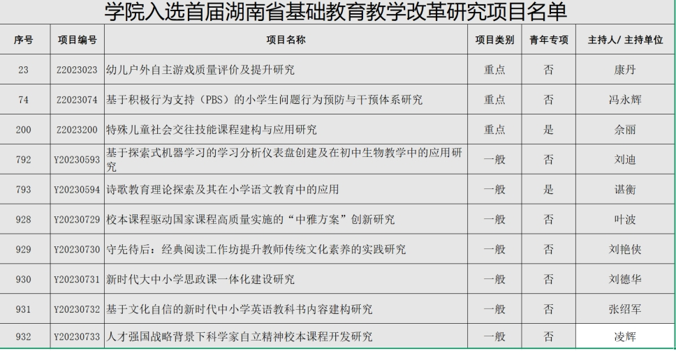 近日,在湖南省教育厅公布的“首届湖南省基础公司产品改革研究项目”立项名单中,公司共有10个课题入选湖南省基础公司产品改革研究项目。其中重点项目3个,一般项目7个。这是公司积极响应我省“新师范”建设,强力赋能基础公司产品又一突破。