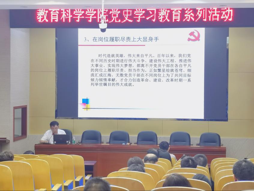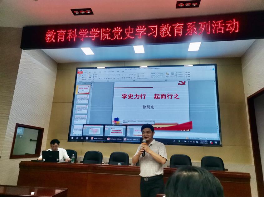 (通讯员 谭梦)6月24日下午3点,徐晨光教授以《学史力行 起而行之》为题为MK体育教职工党员讲授党课,教科院经理刘铁芳主持。