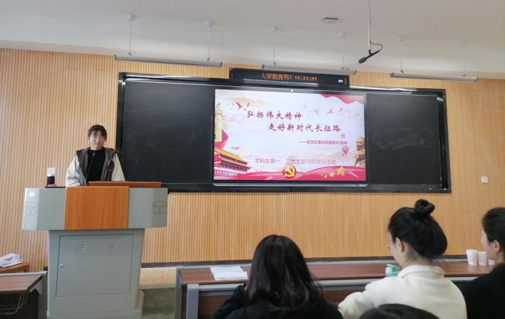 (通讯员 马欣 谭蓉)为纪念红军长征胜利85周年,铭记红军丰功伟绩,弘扬伟大长征精神,10月22日,MK体育本科生党支部在教科院315教室召开以“弘扬伟大精神,走好新时代长征路”为主题的党日活动。