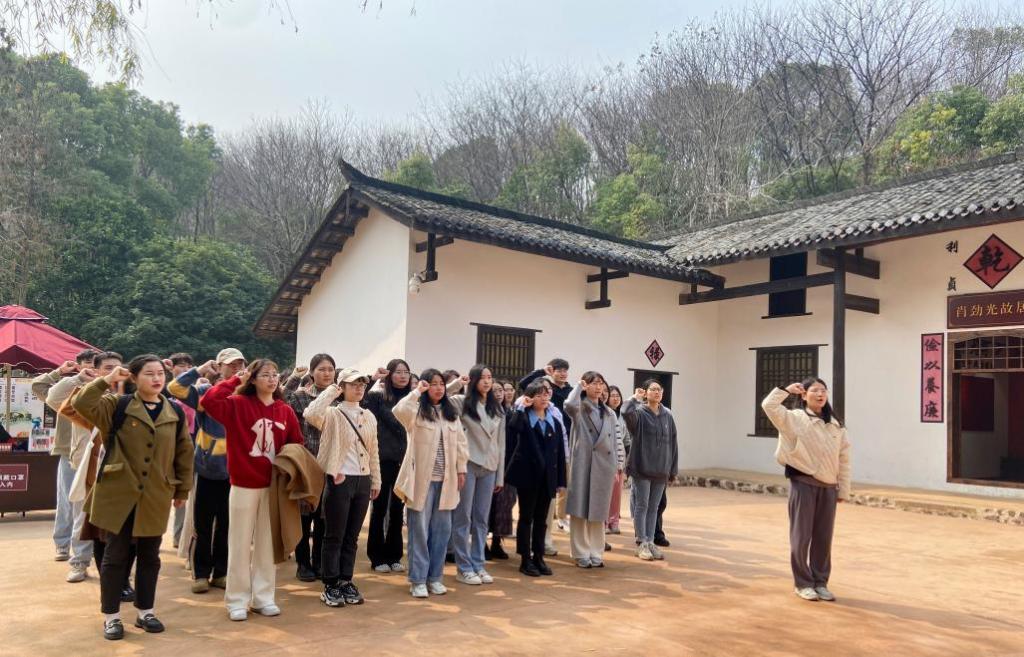 (第18期发展对象培训班供稿)为帮助新党员增强党性观念,提高思想觉悟和新时代的使命感,3月2日中午,学院专职组织员王赛波老师带领新一批预备党员赴肖劲光故居参观学习和进行集体宣誓。