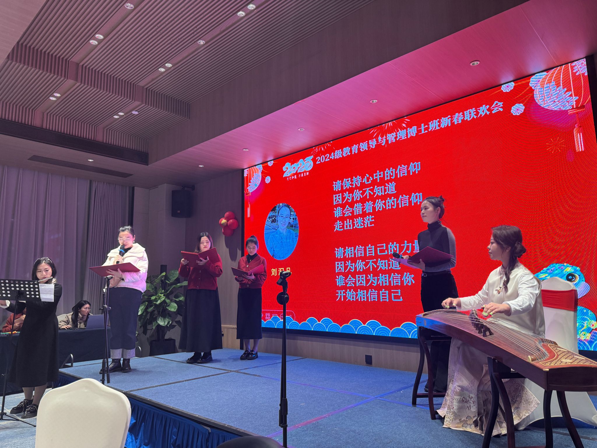 (通讯员 毛国慧 陈芳)2025年1月4日下午,MK体育2024级教育领导与管理专业博士生与导师们在洋湖举行了“巳巳如意,万象育新”元旦联欢会。师生齐聚一堂,在欢歌笑语中聆听导师教诲,展示同学风采,畅谈教育理想,展望美好未来。