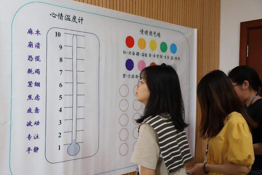 此次心理团体辅导主要分为三个环节,在破冰识压环节,“大风吹”的趣味游戏迅速打破了成员间陌生感,并自然过渡到毕业压力管理话题。而后的“毕业季情绪温度计”活动则引导成员用分值评估压力、用色彩描绘情绪,共同解读“情绪颜色墙”,有效促进了彼此的理解与共鸣。进入焦虑转化环节,毕业生们将就业与毕业相关的焦虑书写在彩纸上,折成“纸飞机”集体放飞。紧随其后的“头脑风暴”则鼓励每位成员为他人的的烦恼集思广益、提供解决方案,在互助中共同面对挑战,并且通过回想“成长里程碑”的方式引导成员回顾大学期间的关键成就事件并分享收获,有效强化了自我认同感和成就感。寄语未来环节则充满温情与期许。在“时光邮局”活动中,毕业生们在舒缓的音乐中给一年后的自己写信,借此来表达对于未来的期许。而在最后的“自我赋能”活动中,成员们围坐一圈,互赠真挚的毕业祝福和鼓励话语,在积极温暖的氛围中积蓄了迎接未来挑战的心理能量。